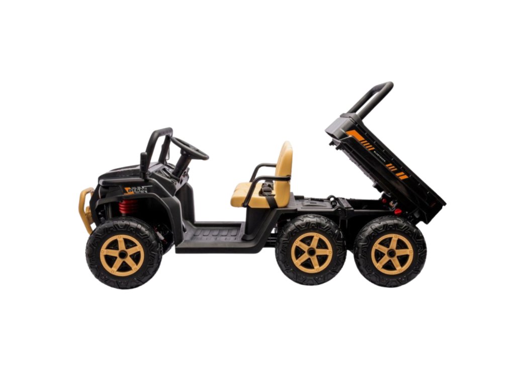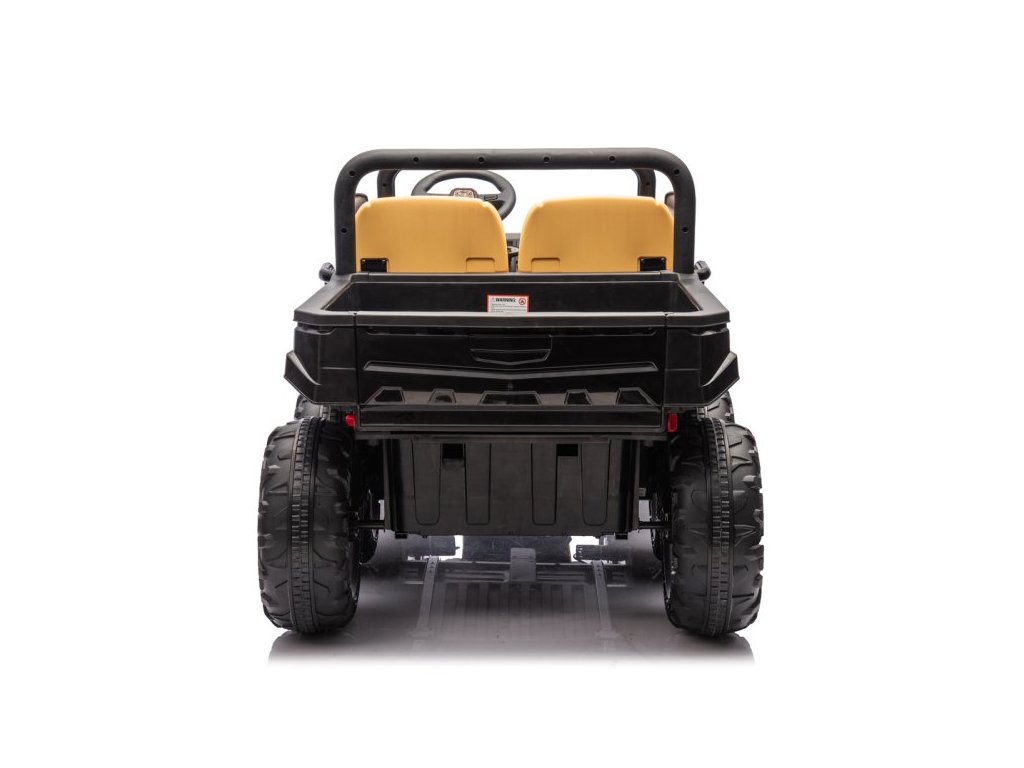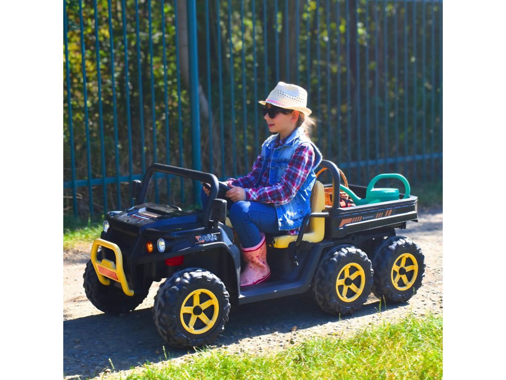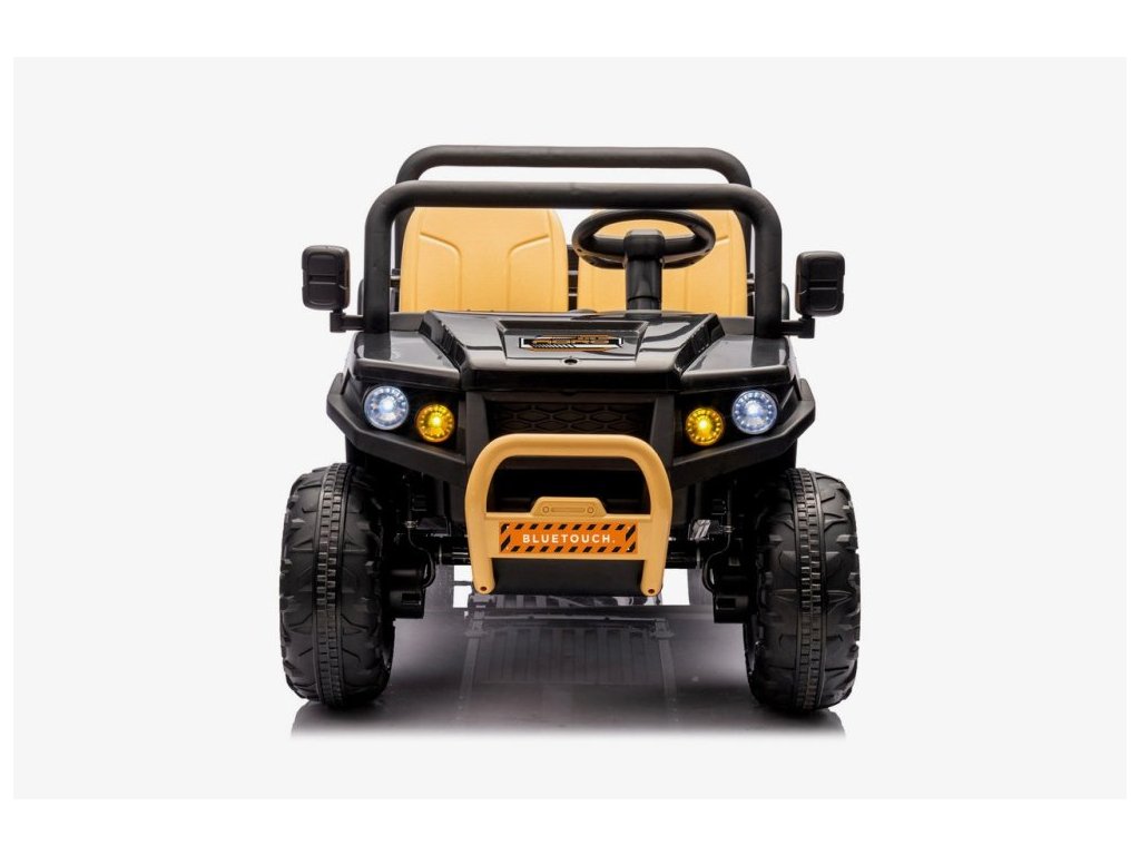 Dětské elektrické farmářské auto je navrženo pro pohodlí a bezpečnost – má široké plastové sedadlo (56 cm), bezpečnostní pásy a nosnost až 35 kg. Díky stabilní konstrukci a odpruženému podvozku se dítě cítí jistě i na nerovném povrchu.