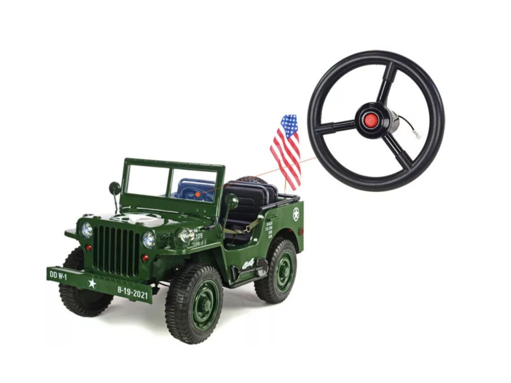 Náhradní volant je určený pro dětské elektrické autíčko džíp Willys 24V. Volant je možné nasadit na osu o průměru 10 mm.
